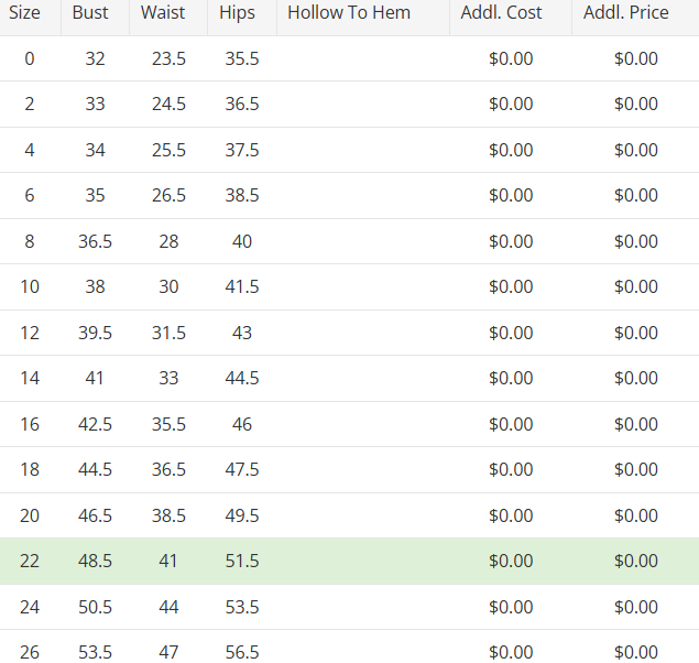 - Each of our gowns follow a gown specific standard bridal size chart