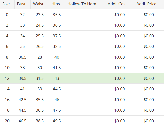 - Each of our gowns follow a gown specific standard bridal size chart