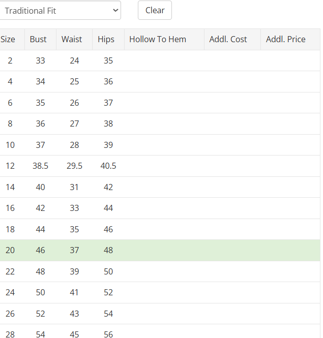- Bridal sizing is usually 2-3 sizes larger than traditional sizing