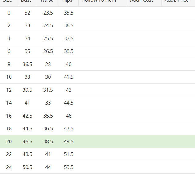 - Each of our gowns follow a gown specific standard bridal size chart