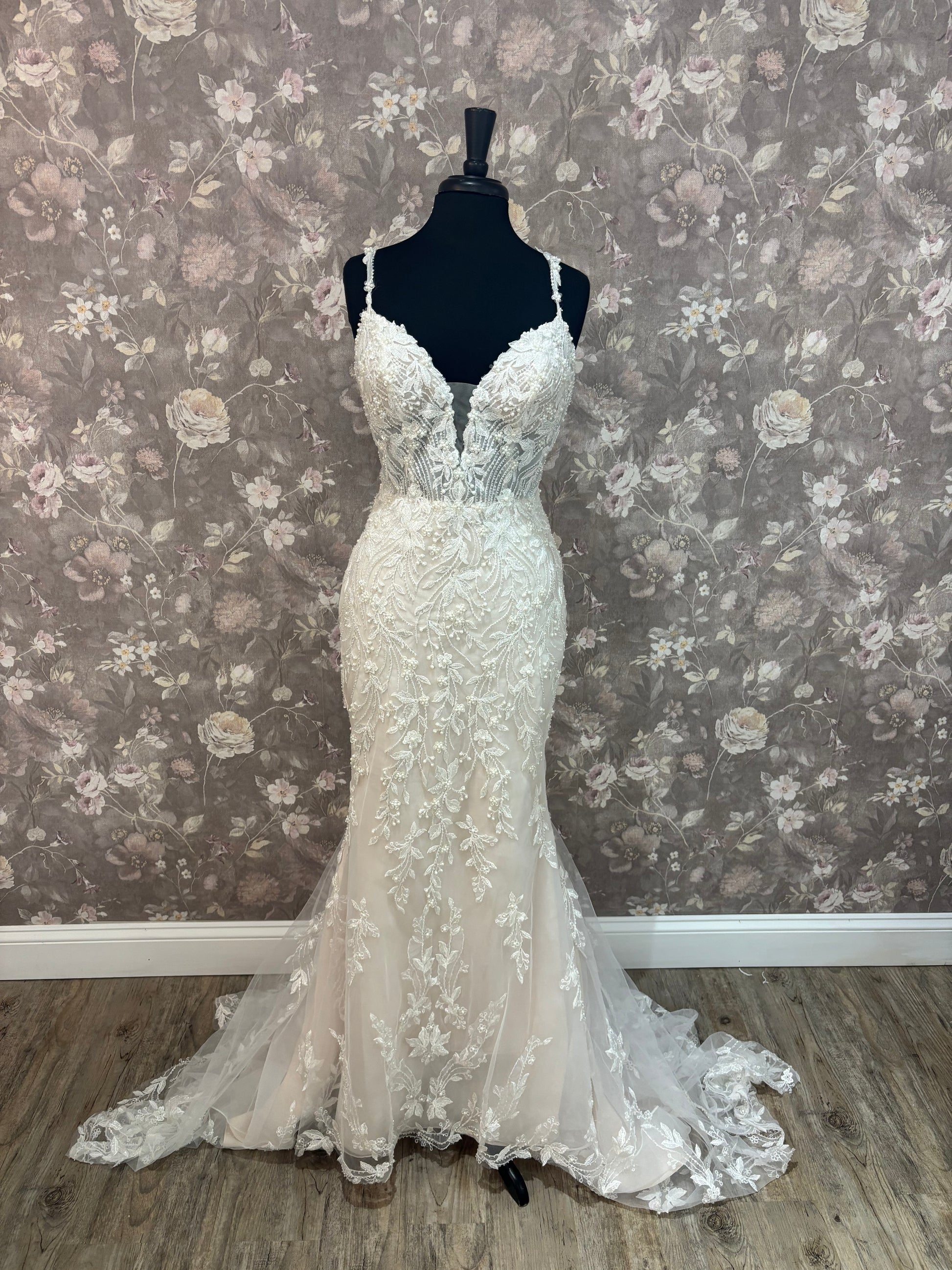 Our gowns have not been worn for a wedding, though they may have been tried on during appointments. While we maintain high standards for our samples, small imperfections—like loose buttons, missing beads, or zipper issues—can happen. These easy-to-fix details with the help of a seamstress mean amazing discounts! Interested in this gown? Chat or email us anytime for more info or extra photos.
