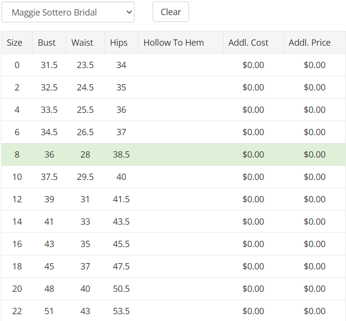 - Each of our gowns follow a gown specific standard bridal size chart