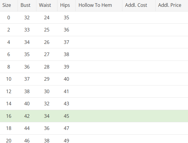 - Each of our gowns follow a gown specific standard bridal size chart