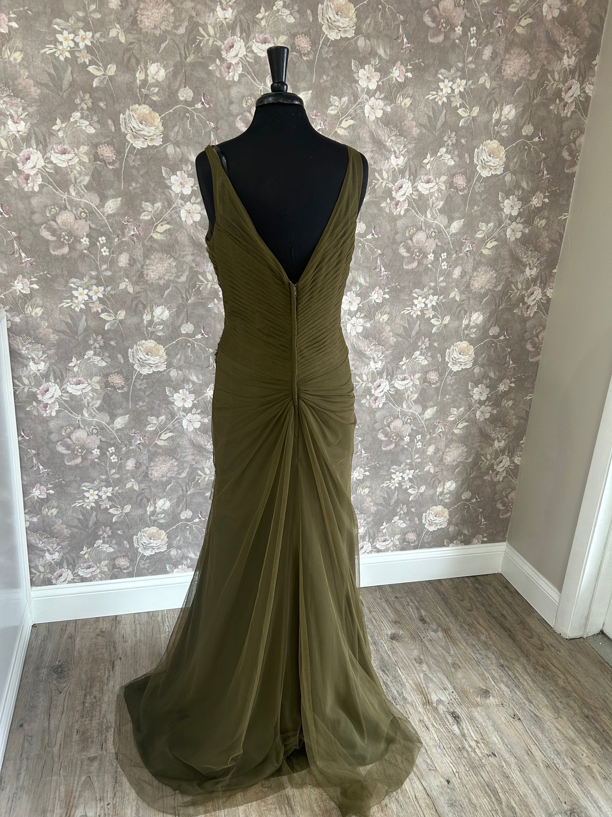 This gown has not been altered or worn down an aisle. Gown was a SAMPLE in a bridal salon. Please ask all questions prior to purchase.